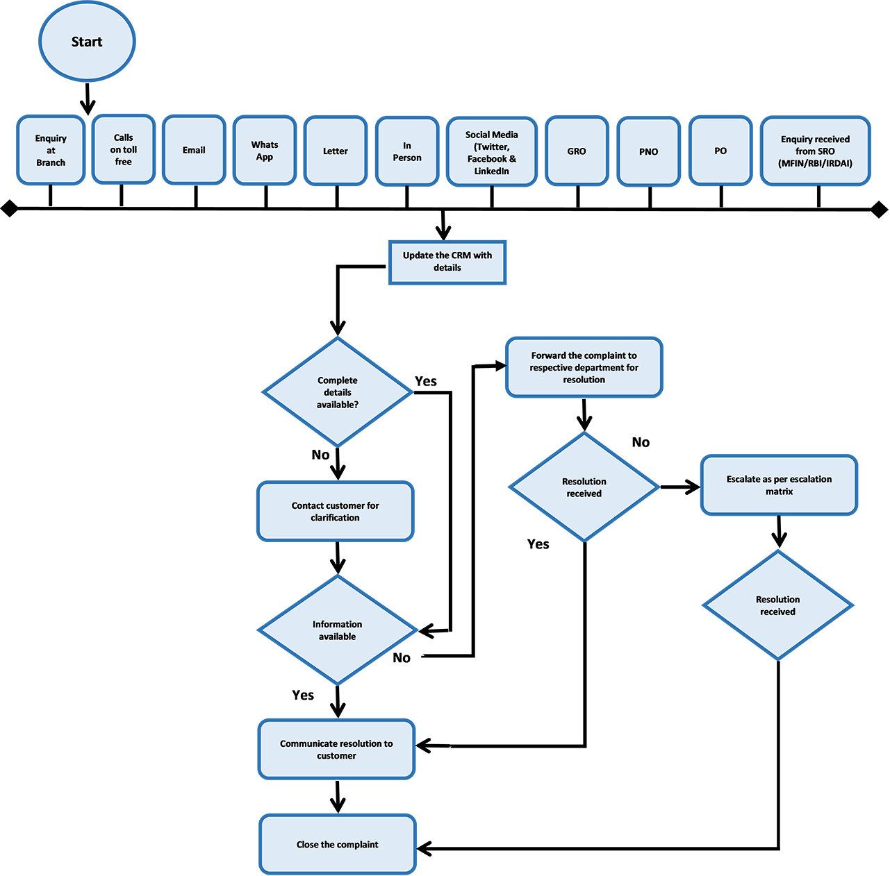 If you are not satisfied with the response received at the branch level or if you don't receive any response from the branch in 3 working days, please call our Customer Care Help Desk to register your complaints: